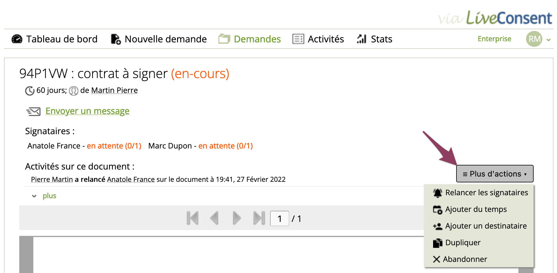 Vous avez la possibilité de faire signer plusieurs personnes. Si vous avez oublié d’ajouter un signataire ou un observateur ? Il n’est pas trop tard pour les ajouter !