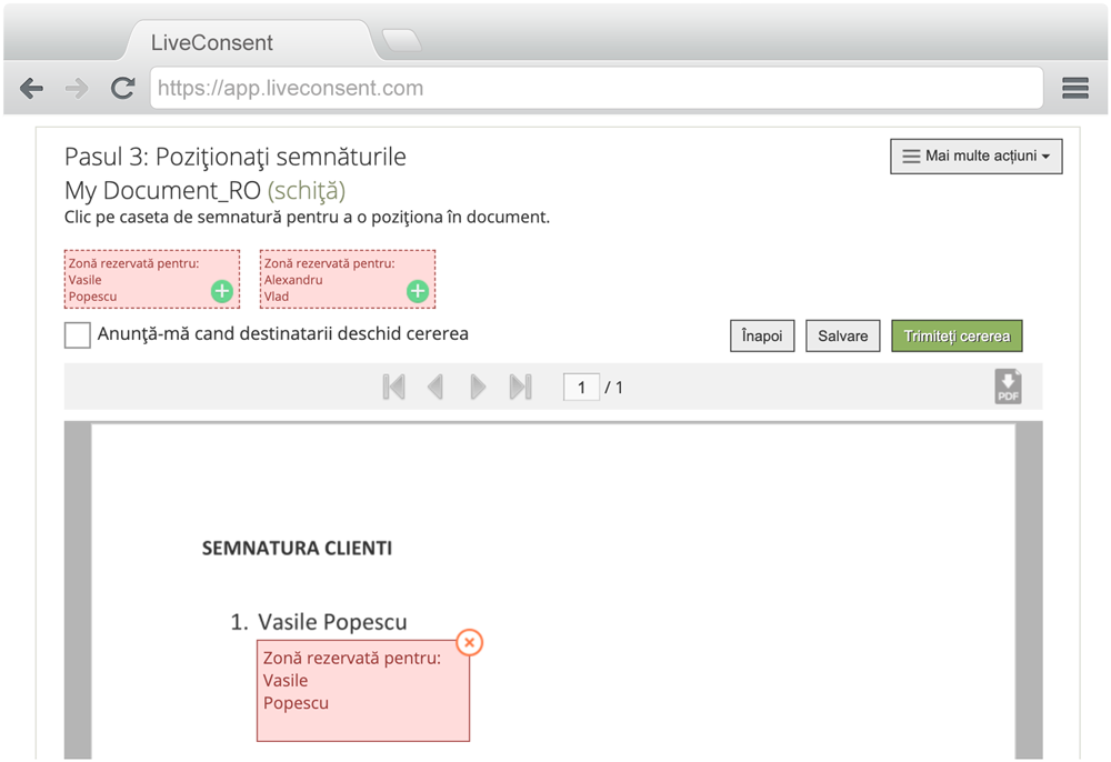 Odată definite zonele, documentul poate fi trimis semnatarilor.