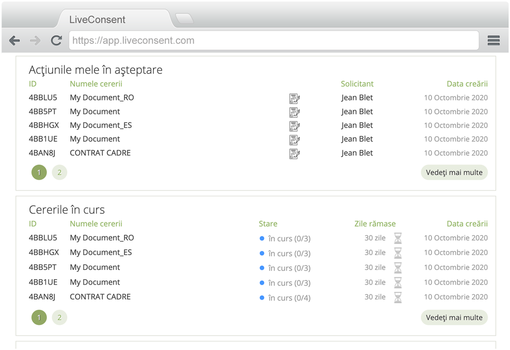 Documentul poate fi semnat de către semnatari diferiți în mai puțin de 2 minute.